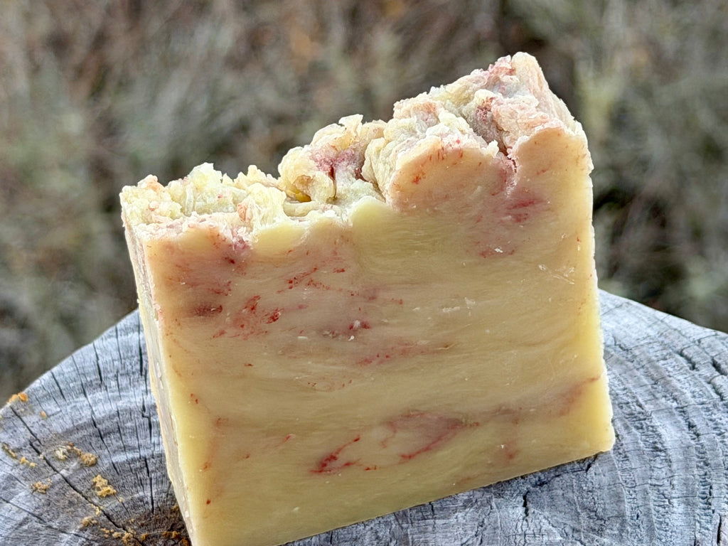 This is a bar that I love to use in the morning. I find that the lemon and peppermint essential oil combination is invigorating and helps to put me in a good mood to start the day. The bar is a base of cleansing French Green clay with veins of rose clay. It’s pretty and slightly scrubby ;-) I also love to use this after a tough workout because of the peppermint-y cool. Mintal Clarity is a cult classic loved by all those who've tried it!